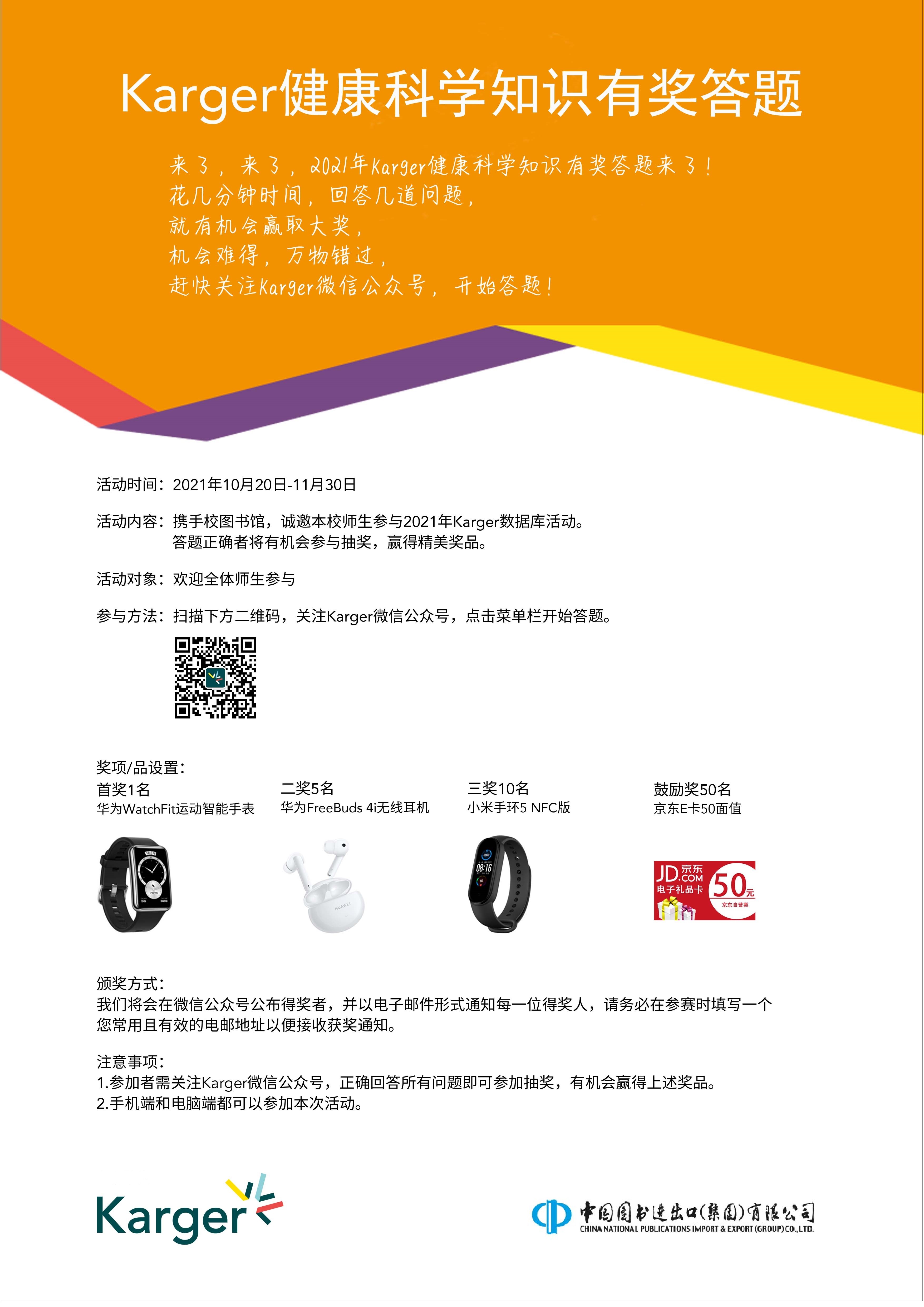 欢迎参加2021年“Karger健康科学知识有奖答题”活动